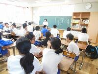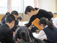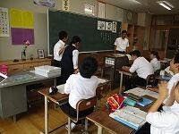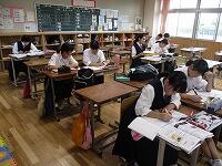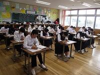 小中交流会として,中学1年生が小学校を訪れ,授業のお手伝いをしました。6年生のクラスでは,中学校生活についての質問に答えました。