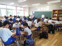 全校集会を多目的室で行いました。夏休み中の学習や生活についての話がありました。多目的室には空調設備があり,涼しい中で集会を行うことができます。