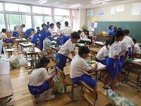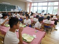 1年生は給食の準備に慣れ,手際よく行えるようになってきました。食事は各グループごとに和やかに食べています。