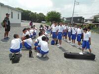 1年生が,昼休みにドッヂボールレクを行いました。暑さに負けず,元気に活動していました。
