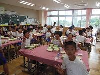 1年生の給食のようすです。本日は七夕にちなんだメニューでした。会話を楽しみながら味わっていました。