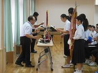 同窓会など多くのご来賓の方々を招いて,創立70周年記念式典を行いました。生徒を代表して生徒会長が今後学校を発展させるための決意を発表しました。