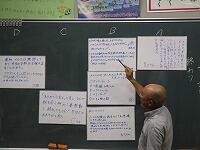 2年2組において,国語の研究授業を行いました。「走れメロス」のクライマックス部分はどこだろうか?というねらいでグループ討議を中心に意見を出し合いました。