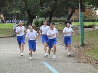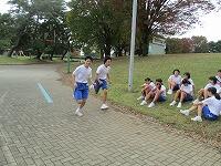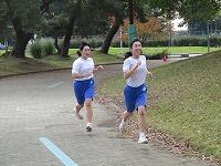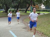 保健体育の授業は持久走を行っています。学校の南側にある大平運動公園を利用し,その中を走っています。