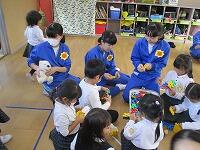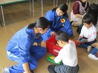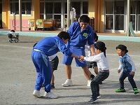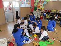 家庭科の授業で,3年1,3組が近くの保育園に行き,保育実習として園児たちとふれ合いました。