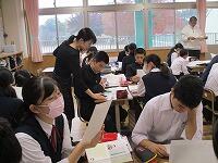 昼休みを利用して,生徒会役員立候補者の受付を行っています。各クラスの選挙管理委員がそれらの事務を担当しています。