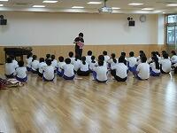 体育館や多目的室での練習です。