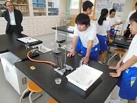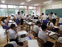 1年2組で理科の研究授業を行いました。「音はどのように伝わるのだろうか」というねらいのもと,紙コップ上のモールヘビが動くようすや,針金を使った糸電話の針金が振動するようすを体験し,音と物体の振動について実験を行いました。生徒はたいへん意欲的に活動しました。