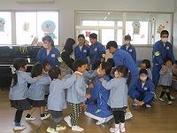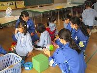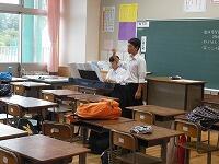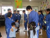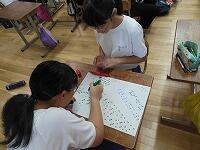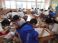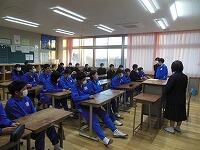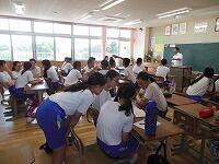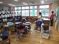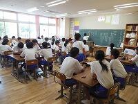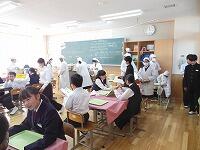 小中交流会を行い,1年生が学区内の小学校へ行き,授業の補助を行いました。みんな小学生に優しく接していました。