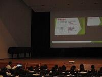コンピュータ部の1年生が,スライドを上映しながら学校生活について説明しました。