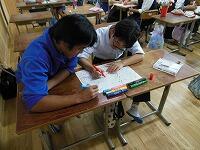 3年生のテストのようすです。だれもが一生懸命問題を解いています。