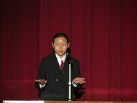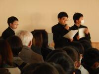12月25日に第2学期の終業式を行いました。学校長式事後,各学年の代表3名の生徒が,2学期を振り返り,3学期に向けての抱負を発表しました。