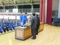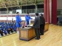 表彰集会を行い,文化的な活動や運動部などの活動で多くの生徒が表彰を受けました。