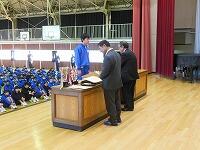 任命集会を行い,生徒会役員,3学期学級委員長を任命しました。