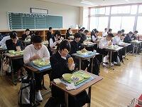 3年生が同窓会入会式を行いました。同窓会の会長様をはじめ4名の役員の方々に来校していただき,励ましのお言葉をいただきました。