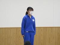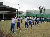 1年生女子の保健体育の授業のようすです。弓道の学習に入りました。射法八節をひも弓で学習しました。