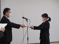 修了式を行いました。Zoomを用いて,各教室に映像を映しました。各クラスの代表生徒が修了証を校長先生から受け取りました。また,式後に書道に関する表彰を行いました。