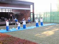 ソフトテニス部はサーブ時の体の使い方の練習を熱心に取り組んでいました。