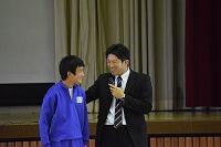 本日は1,2年生の修了式、及びALTとのお別れ会、金山先生の卒業式でした。