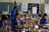 吹奏楽部はパートごとに分かれて練習したり、全員でリズムの確認をしたりしていました。