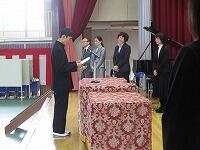 卒業式を行いました。コロナウイルス感染拡大防止のため,卒業生,保護者,教職員,在校生の代表者の参加で行いました。式後,感謝の気持ちを込めて,卒業生が「旅だちの日に」を合唱しました。