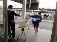 水道では床に印を付け,混み合うのを防いでいます。また,手洗いと消毒はこれまでよりしっかり行っています。配膳は使い捨ての手袋を使うなど衛生面に気をつけています。