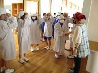 食物アレルギー対応研修会を行いました。ロールプレイにより,対応時の行動について確認しました。
