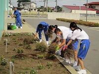 花壇の花が咲きました。クラスごとに割り当てられた場所を緑化委員の生徒を中心に育てました。
