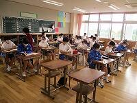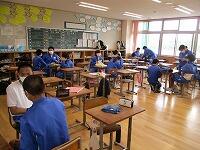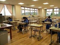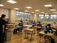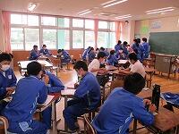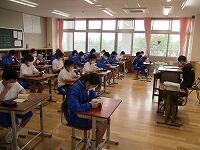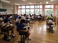 期末テストを実施しました。1年生にとっては初めての定期テストです。みんな一生懸命問題を解いていました。1年生のようすです。
