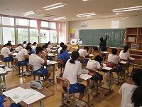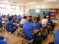 書写の授業のようすです。地域の方を講師に招き,丁寧に教えていただきました。