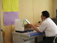 体調チェック表の確認のようすです。新型コロナウイルス感染の警戒度が感染拡大注意に変更になったことを受け,確認する場所が教室から昇降口に変更になりました。校舎に入るところで,各学年ごとに体調を確認しています。ご家庭には,引き続き,検温等のご協力をお願いいたします。
