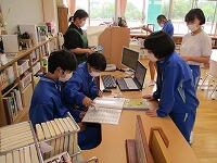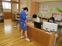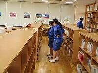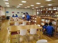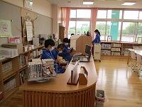 お昼休みの図書室のようです。天候が悪く,室内で過ごしています。