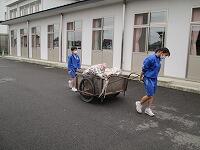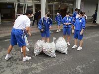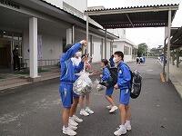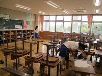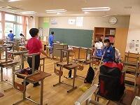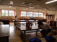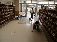 清掃活動のようすです。感染症予防対策として,現在清掃には制限があり,10分間の簡易清掃を行っています。