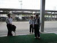 2年生が職場体験学習の各事業所との打合せに行きました。昇降口で確認を行い,グループごとに体験先に向け出発しました。