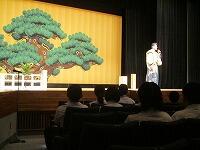 大平文化会館において、狂言を鑑賞しました。演目は「柿山伏」と「附子」です。また、はじめに狂言についての解説があり、最後には各クラスの代表者によるワークショップがありました。初めて狂言を鑑賞する生徒がほとんどでしたが、楽しい時間を過ごすことができました。