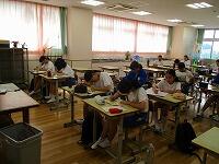 1,2年生の給食のようすです。各クラスとも和やかに食事をしています。