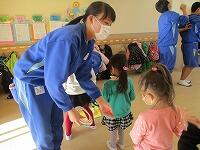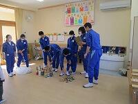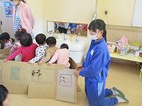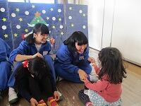 本日は、本年度最後の保育園訪問の日でした。園では、12月17日がお遊戯会の日だということで、ステージでの練習風景を見せていただいた班もありました。今日も、中学生の作ったおもちゃで楽しく遊んでくれました。男子生徒が「子どもはかわいい!!」とずっと言い続けていたことが、嬉しかったです。子どもと触れ合う貴重な時間を持たせてくださったフォレストキッズの先生方ありがとうございました。