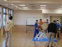 お囃子の練習が本格的になりました。地域の方々に指導していただいています。