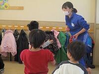 本日も3年生家庭科の保育実習で、フォレストキッズ保育園に行ってきました。本日は3-1です。園では、お遊戯会の練習真っ盛りですが、大平中生のために、実習の時間を作ってくださいました。園の先生方お手製の、お遊戯会の衣装を着て、園児達は大はしゃぎでした。