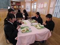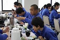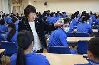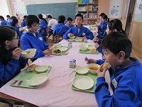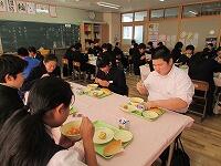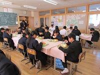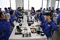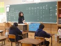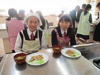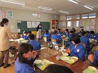 また、給食の時間、1年1組では、栄養教諭と学校栄養士が箸の持ち方の指導をしました。