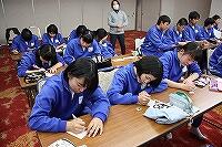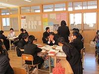 生徒たちは、グループの友達の作品を評価し感想をかき、それをもとに活発に話し合っていました。