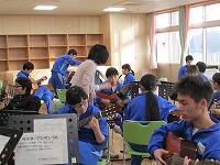 生徒たちは、グループで、ギターやリコーダーの練習をし、その後、ギターアンサンブルの発表をしました。とても楽しそうに演奏していました。