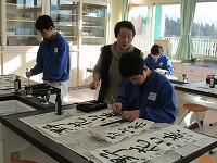 昨日に引き続き、書き初めの作品作りをしました。今日も地域ボランティアの関塚さんにご指導いただきました。