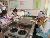 本日は1-2か゜調理実習でした。今回で今年度4回目の実習となりました。大変手際が良く、開始から35分で試食ができた班もありました。ゆっくりと試食と反省を行い、余った時間で期末テスト対策もできました。