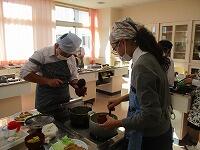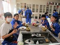第四回目の調理は、「煮魚とほうれん草のごま和え」です。モロの煮付けは、多少しょっぱかったので「ご飯があるともっとおいしかったのに・・・」という生達の感想でした。初めての煮物の実習なので焦げ付いてしまっては大変!と、心配していましたが、全ての班がとても上手に作っていました。手際もだいぶ良くなり、余裕を持って片付け・反省ができました。