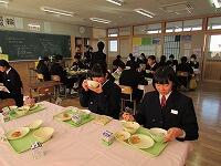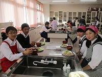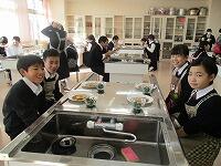 1年生家庭科は、調理実習をしています。本日は、1-4が「豚肉の生姜焼き、キャベツと油揚げの味噌汁」を作りました。どの班も(班は二人です)上手に作っていました。簡単に作れますので、1年生には、是非、家庭でも作ってもらいたいと思います。