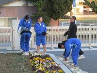 生徒会の専門員会がありました。緑化委員会は寒い中花壇の手入れをしていました。