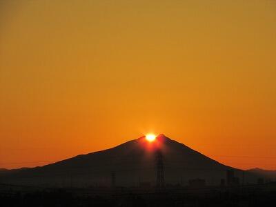 今朝、校舎3階から撮影しました。1年に2回見られますが、今朝のような快晴の日しか撮影できません。ダイヤモンド筑波とパール筑波です。