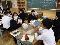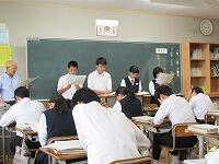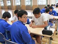 小林先生と齋籐先生が国語の研究授業をしました。生徒たちは、よく考えて答えていました。