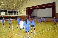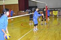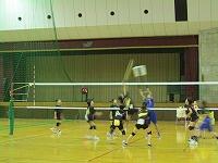 男子バレーボール部は、小学生と混合チームを組み、練習試合をしていました。